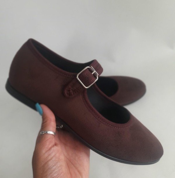 Guillerminas clásicas, flexibles y cómodas con base de goma antideslizante. Interior forrado, con plantilla y hebilla metálica. Material: microfibra símil gamuza.