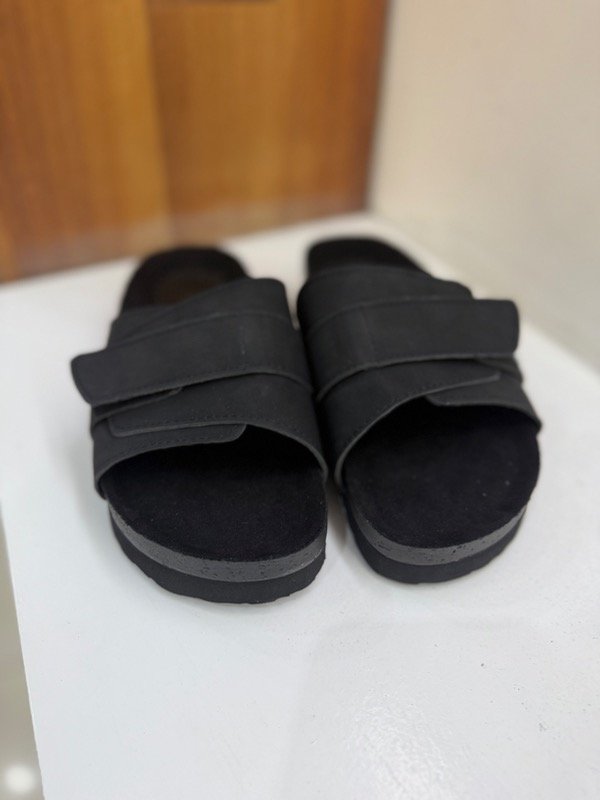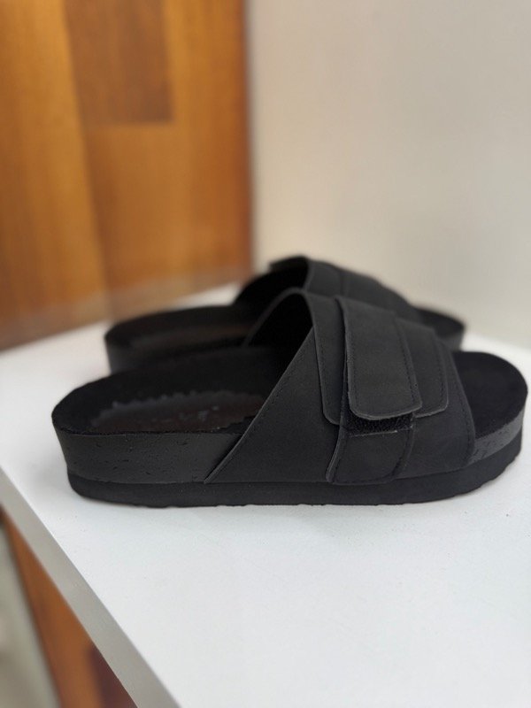 Sandalias confeccionadas en cuero vegano con base de goma y plantilla anatómica termoformada. Totalmente regulables, se abren en su totalidad para facilitar el calce, poseen velcro como forma de sujeción.