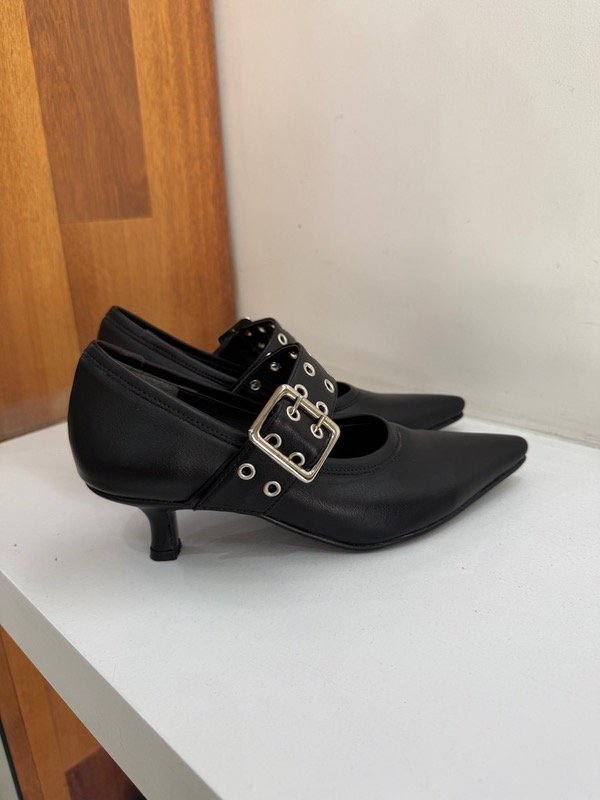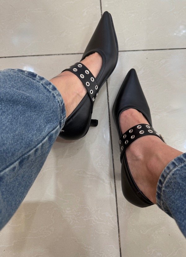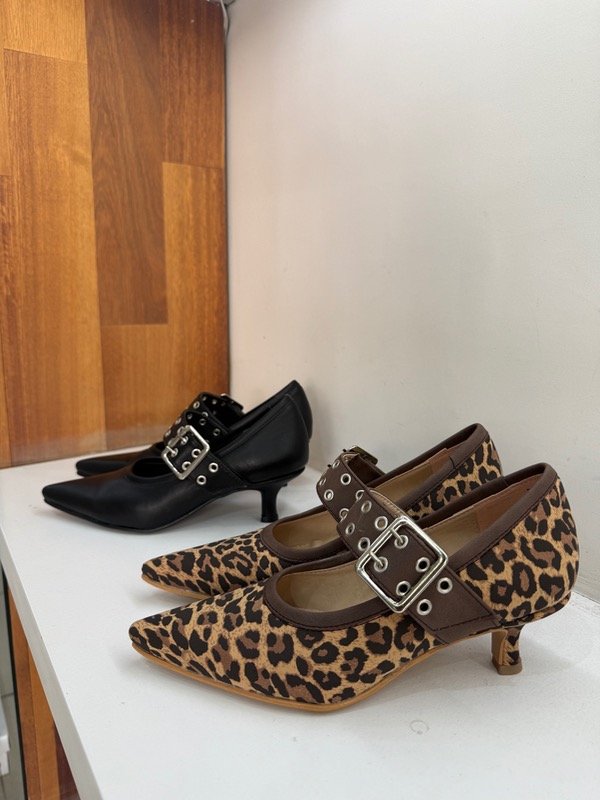 Nuevos stilettos confeccionados en eco cuero , con pulsera y taco chupete de 4 cms.